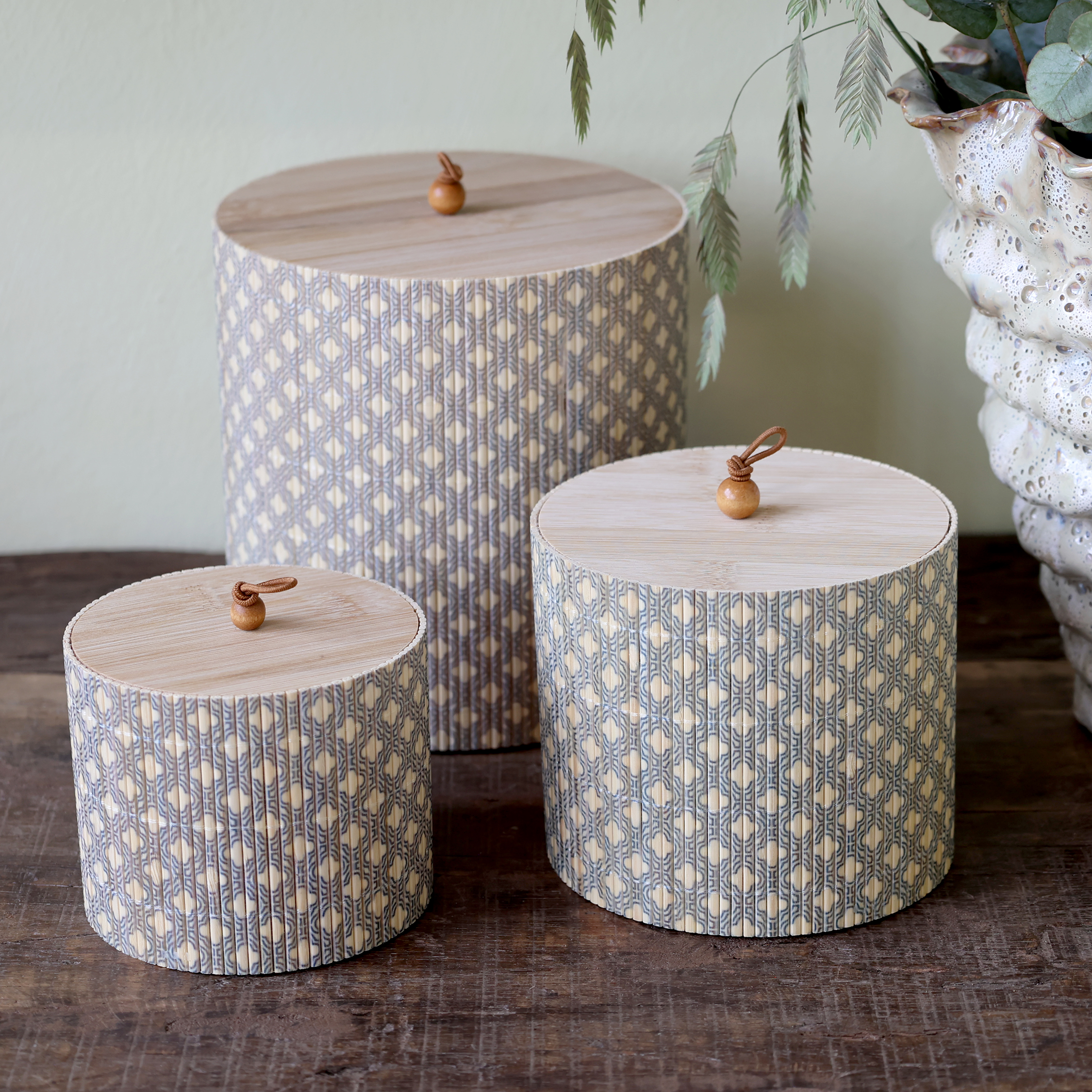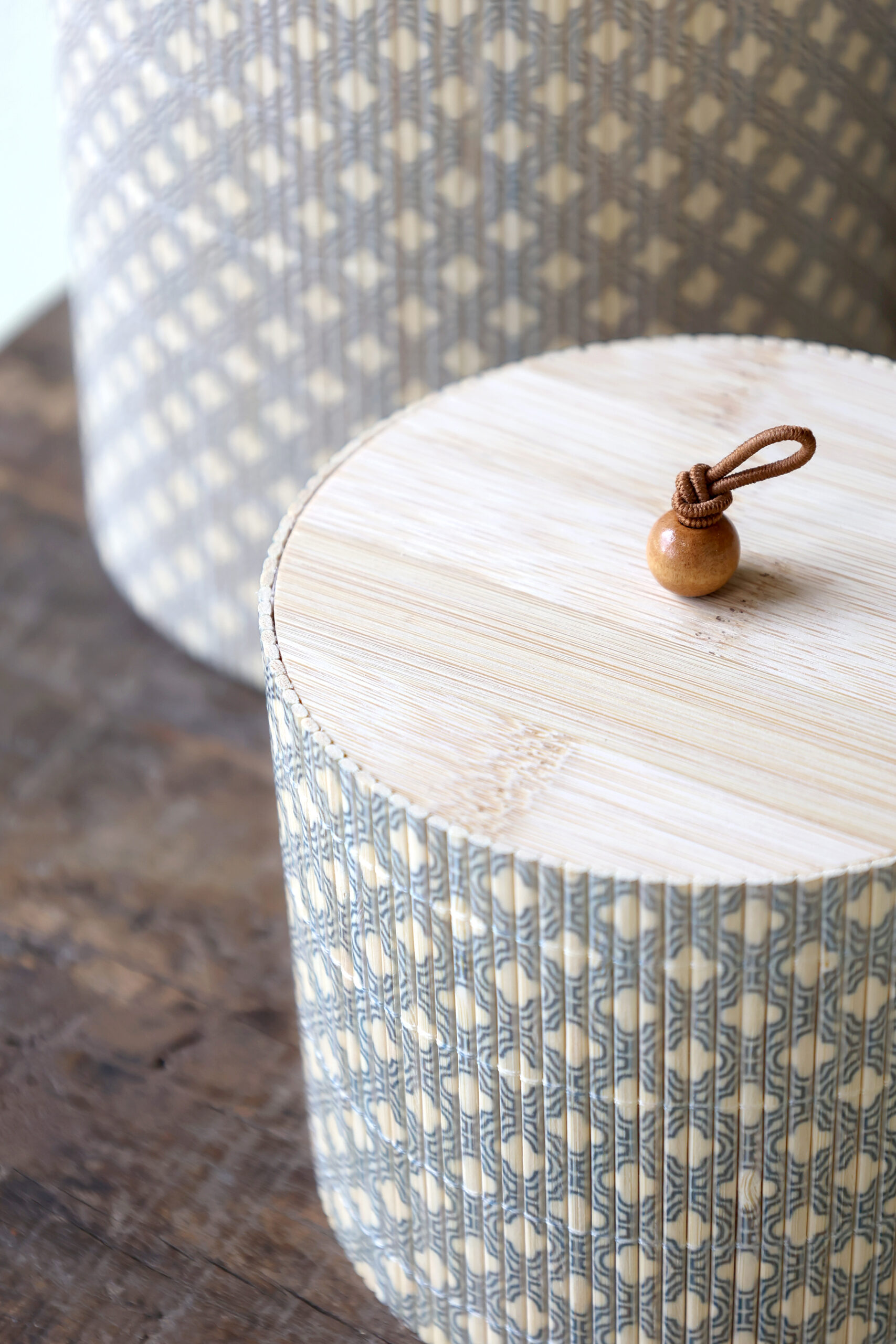 Praticité & Détails : Chaque couvercle en bambou est doté d’une petite anse en cuir avec perle de bois, facilitant l’ouverture tout en ajoutant une note artisanale.