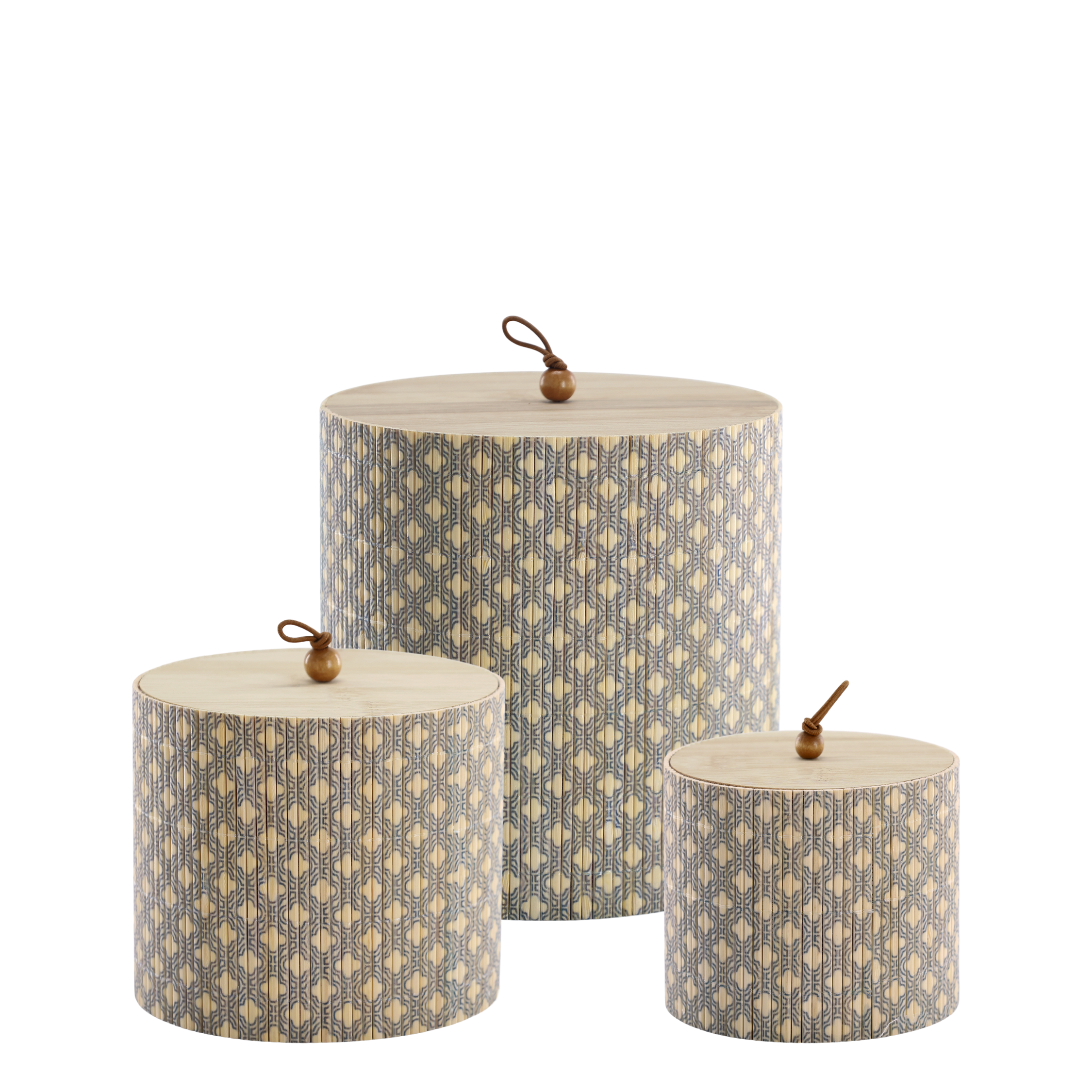 Organisez votre intérieur avec élégance grâce à ce lot de 3 boîtes cylindriques gigognes. Alliant la noblesse du bambouet la finesse du raphia tissé, ces boîtes transforment le rangement en un véritable atout déco.