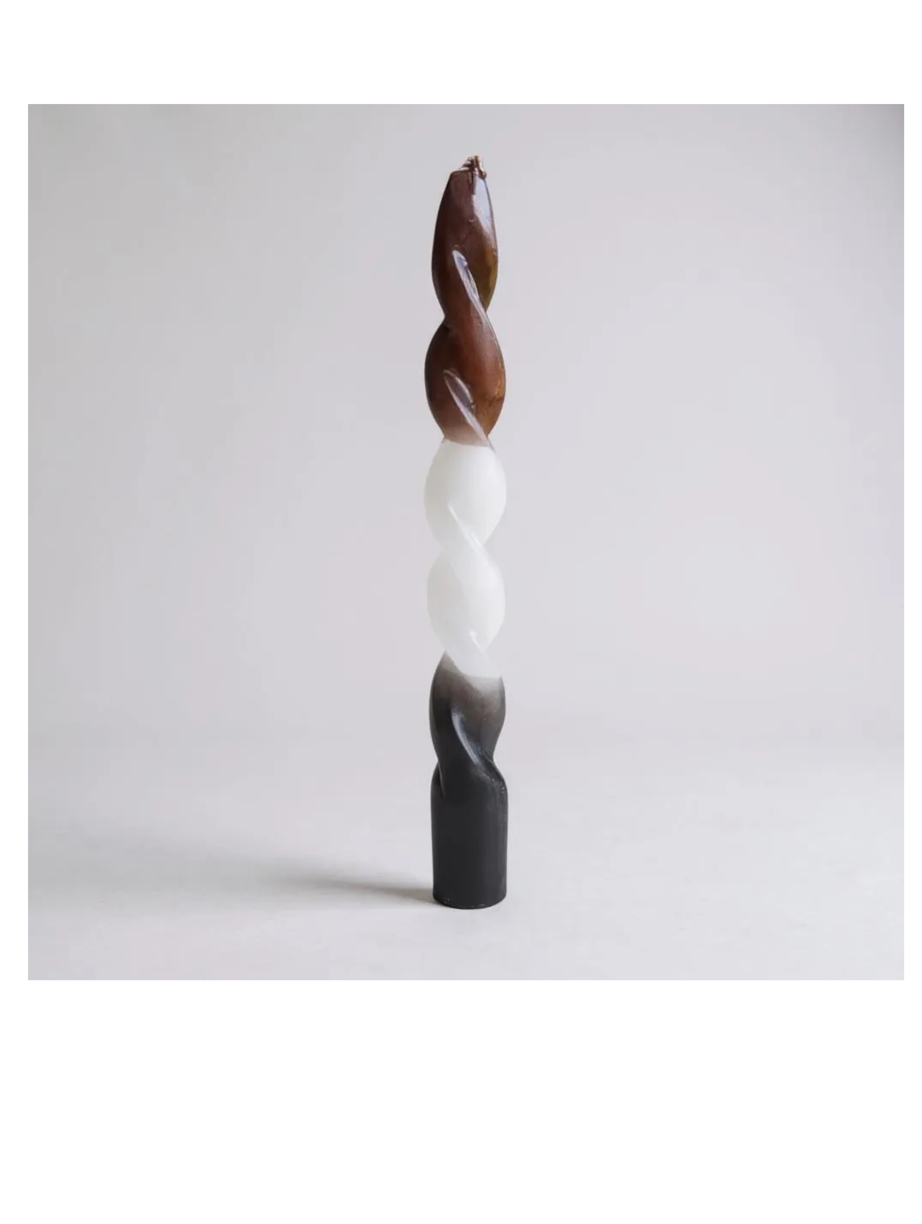 Cette bougie sculpturale en forme de spirale est un véritable chef-d’œuvre. Elle présente une succession de trois teintes distinctes qui s’entremêlent avec grâce : un brun riche et profond à la base, un blanc pur et lumineux au centre, et un brun chocolat plus clair au sommet. Sa forme torsadée et élégante en fait un objet de décoration à part entière, idéal pour apporter une touche d’originalité et de sophistication à votre intérieur. Que ce soit pour une occasion spéciale ou pour égayer le quotidien, cette bougie est une promesse d’ambiance et de style.