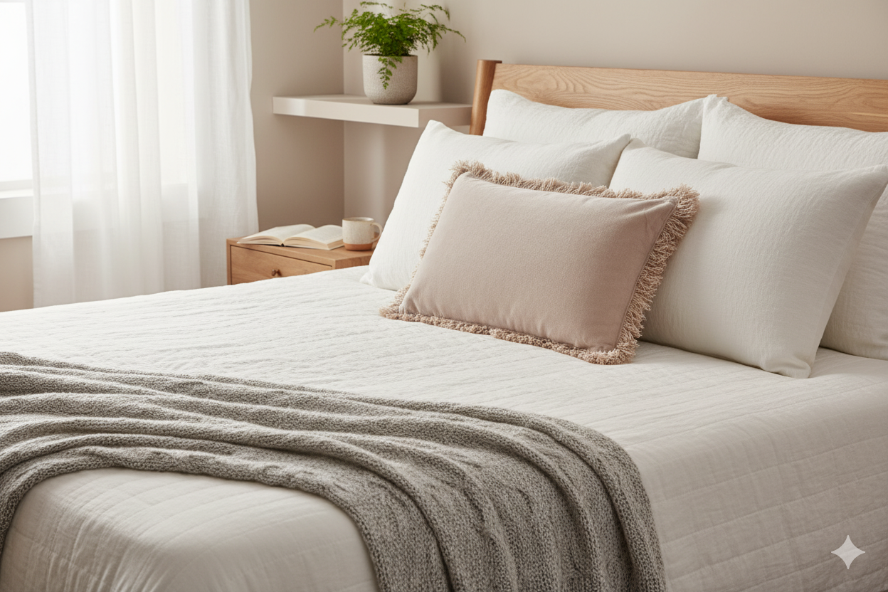 - Lavage : Si la housse est amovible, vérifiez l’étiquette. Si le lavage en machine est possible, optez pour un programme délicat à froid (30°C maximum) et un essorage très faible pour ne pas abîmer les fibres et la forme du coussin.