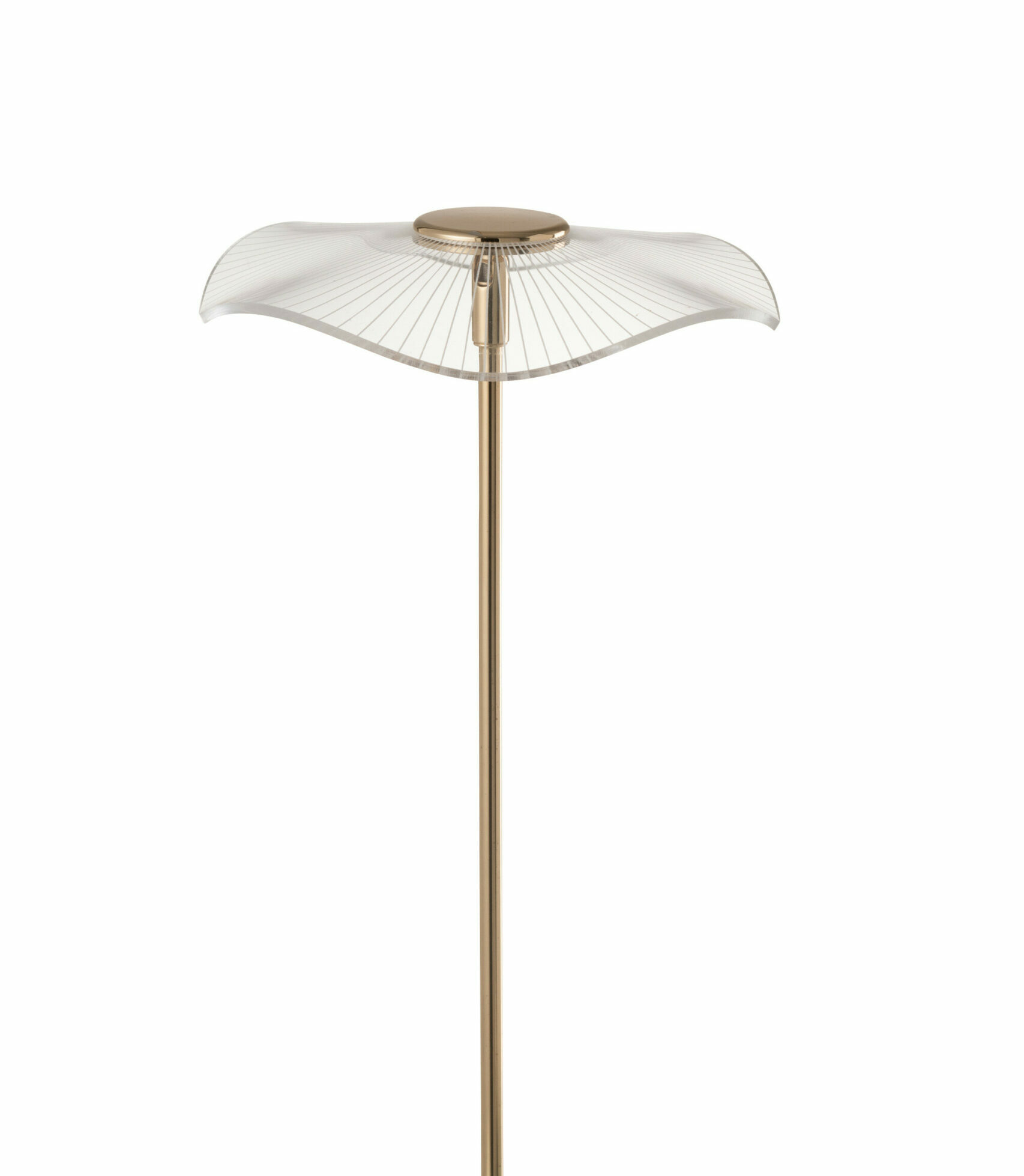 Illuminez votre intérieur avec cette lampe de table au design unique et raffiné. Inspiré d’une feuille de lotus, son abat-jour en acrylique transparent repose délicatement sur un pied et une base en métal doré. La lumière se diffuse à travers les fines rainures de la « feuille », créant un éclairage doux et chaleureux. Avec son style moderne et son look sophistiqué, cette lampe est un véritable objet de décoration pour votre salon, chambre ou bureau.