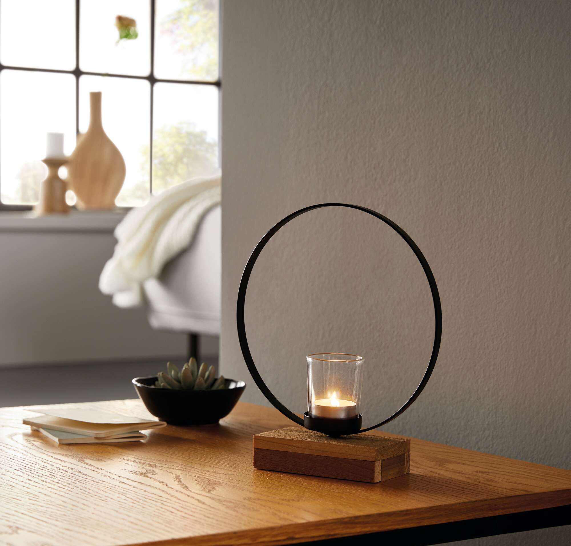 Apportez une ambiance feutrée à vos soirées avec ce magnifique bougeoir. Le contraste entre le grain naturel du bois et la finesse de l’anneau métallique en fait une pièce unique. Parfait pour une bougie chauffe-plat ou une petite bougie pilier, il diffuse une lumière douce tout en restant un objet d’art élégant même éteint.