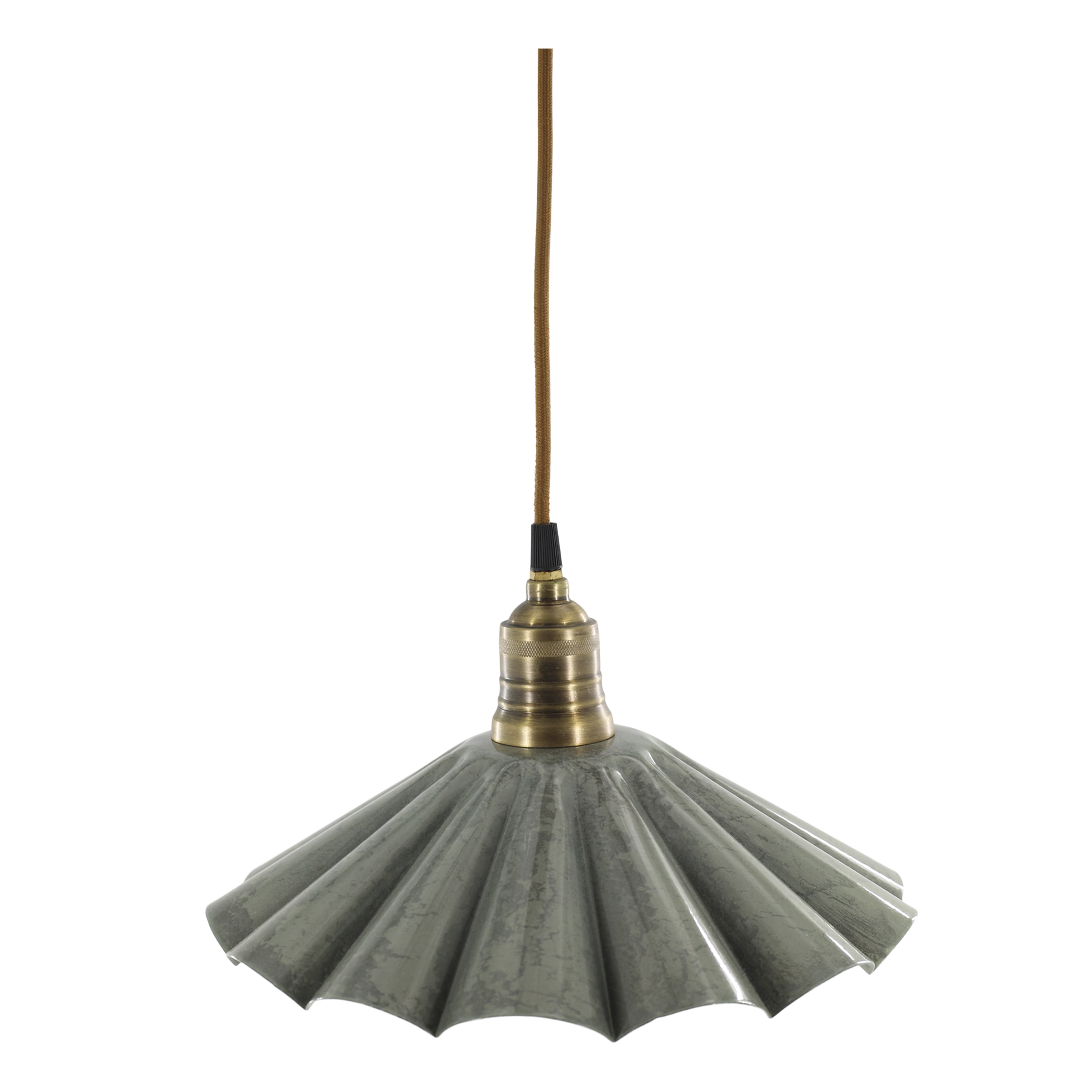 Abat-jour plissé : Sa forme en éventail, réalisée en métal avec une finition grise patinée, offre un jeu de texture unique et un look résolument rétro.