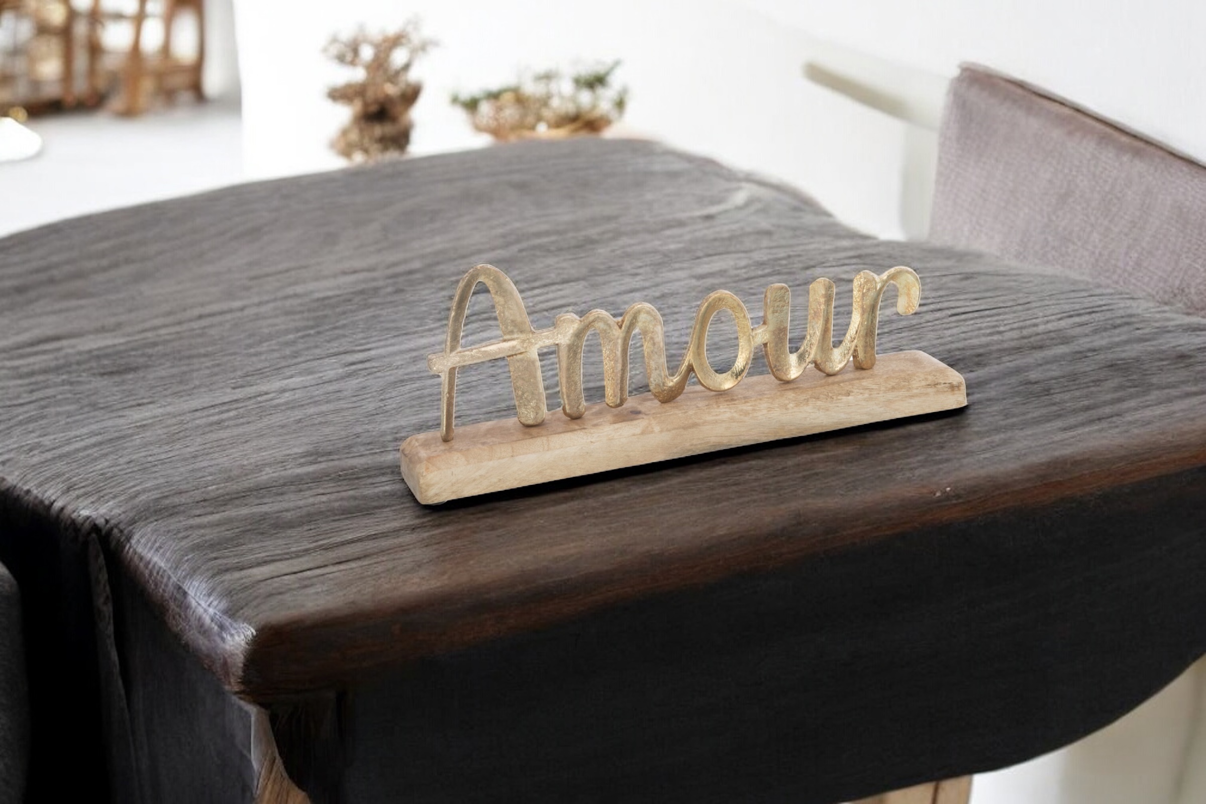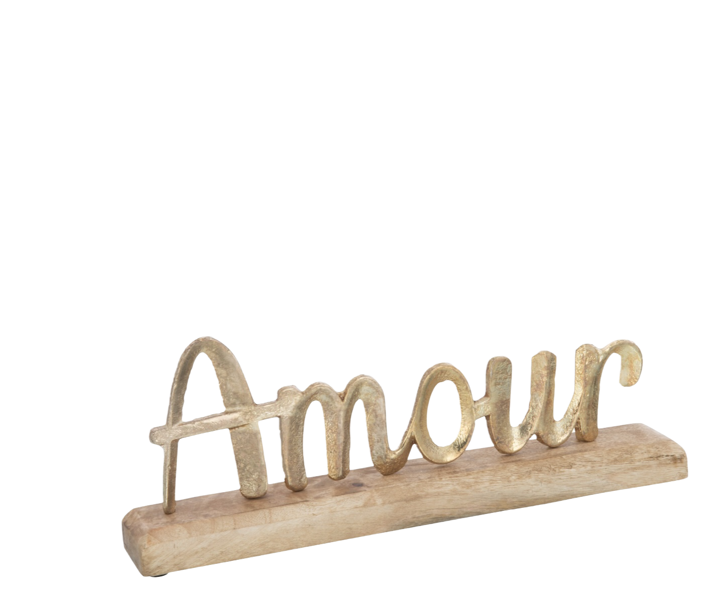 Ce mot est plus qu’une simple décoration, il est une invitation au bien-être. Sculpté en lettres dorées et monté sur une base en bois naturel, il célèbre les valeurs essentielles de la vie : Amour qui nous unis. Placez-le dans les pièces de votre maison pour rappeler sa valeur et créer une ambiance positive et inspirante.
