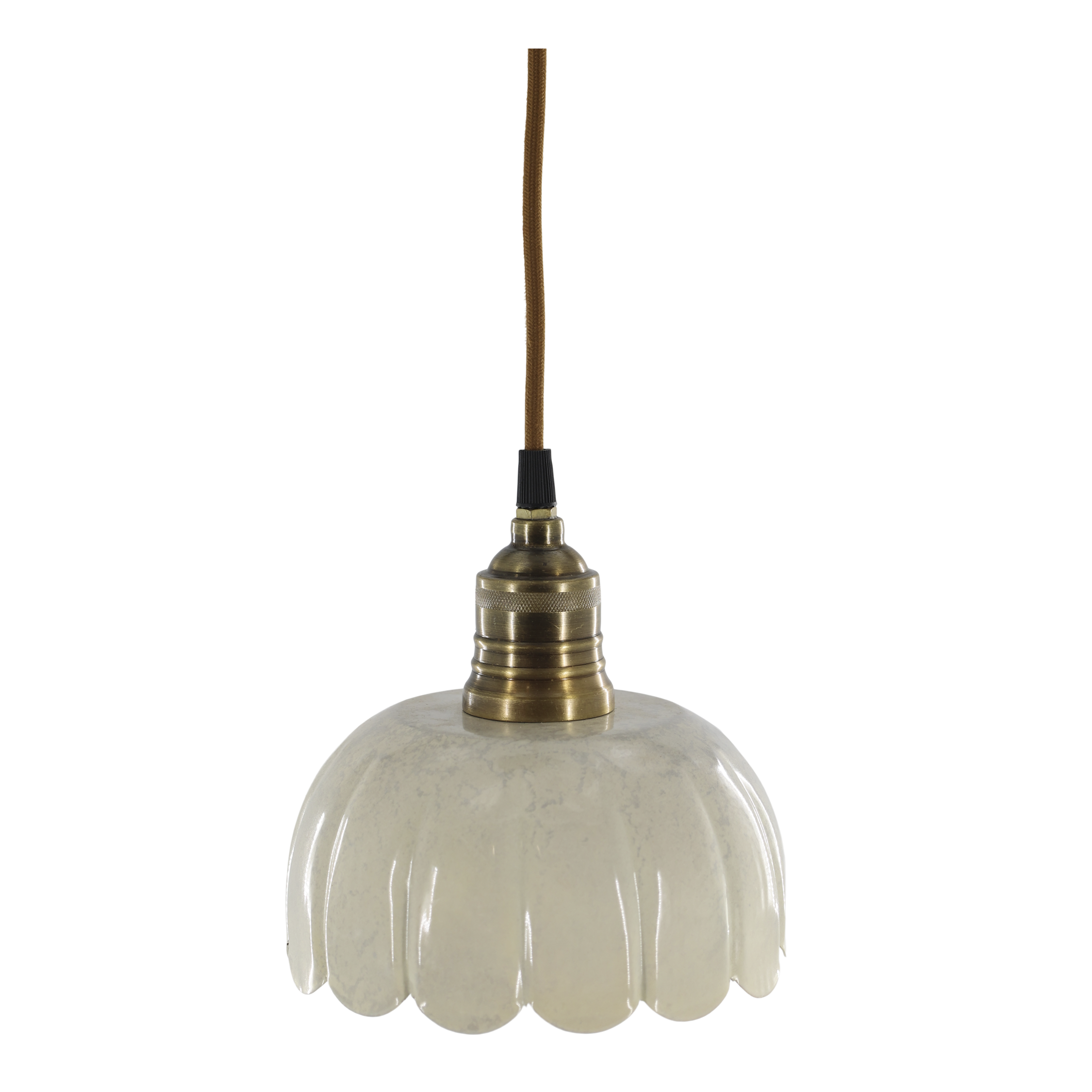 Matériaux Nobles : L’alliance de la céramique émaillée à l’aspect moucheté et de la douille en laiton vieilli crée un contraste raffiné et authentique.